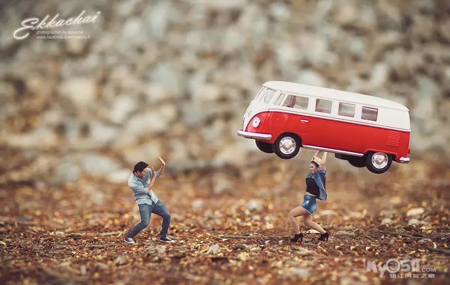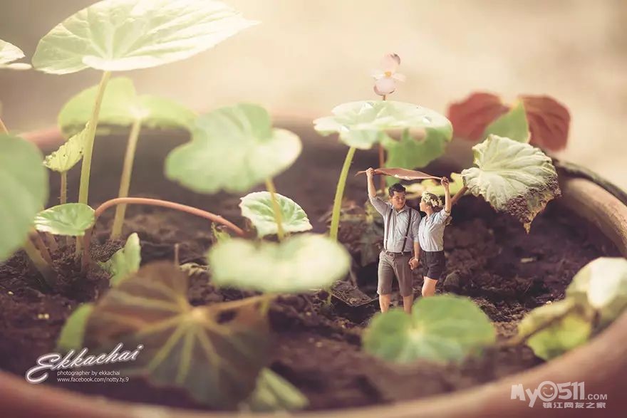 他把一对对幸福的夫妇变成了“小人儿”让一切看起来奇妙,但是从他的照片中同样可以看的出来:虽然人物身体变小了,但是照片证明他们的爱仍然是强大的。
