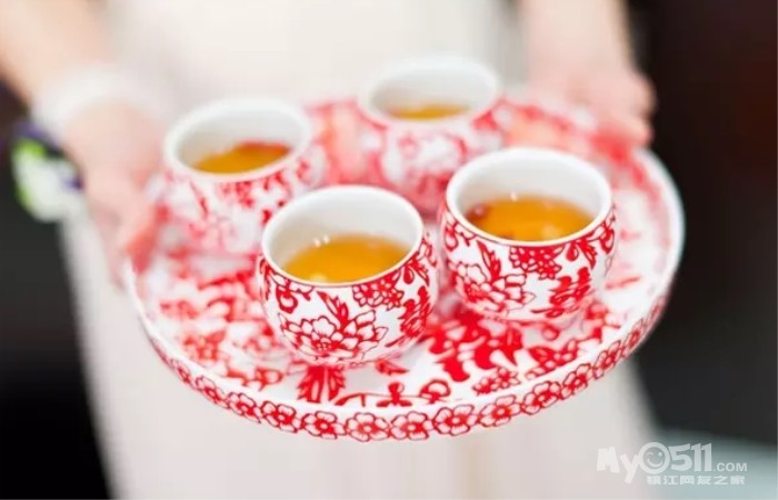 新人敬父母茶,不要只记得改口,收红包,关于礼节方面也要仔细了解,敬茶的姿势、手势、态度;收红包的礼节等都要注意。