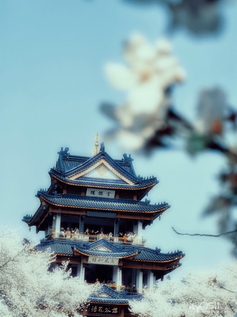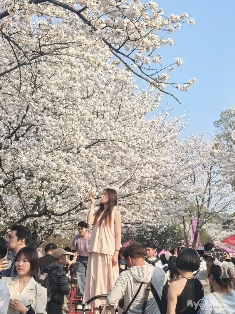 太湖仙岛浮在烟波中时,赏樱阁的鎏金檐角正挑破云翳。台阶上的排队而上的人流缓慢蠕动,偶有人群里有人喊:别拍了,快走吧。我在人潮缝隙里窥见一株垂枝樱,老干皴裂如青铜器,枝条却温柔垂向八卦池,水面上浮动的花瓣,恰似从唐代漂流至今的胭脂盏。