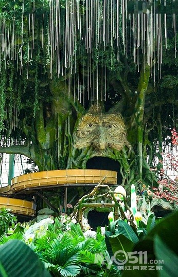 雨林秘境:场馆在整体项目西面,以热带雨林为主题的嘉年华游乐场馆,植入各种植被与花卉,充分地与室内融为一体。这部分主要分为图腾广场、勇者奇营、绿洲遗迹、以及神秘部落等四个主题空间,其中富有特色的项目密林游龙为荷兰过山车厂商威克玛旗下新型的弹射式过山车。