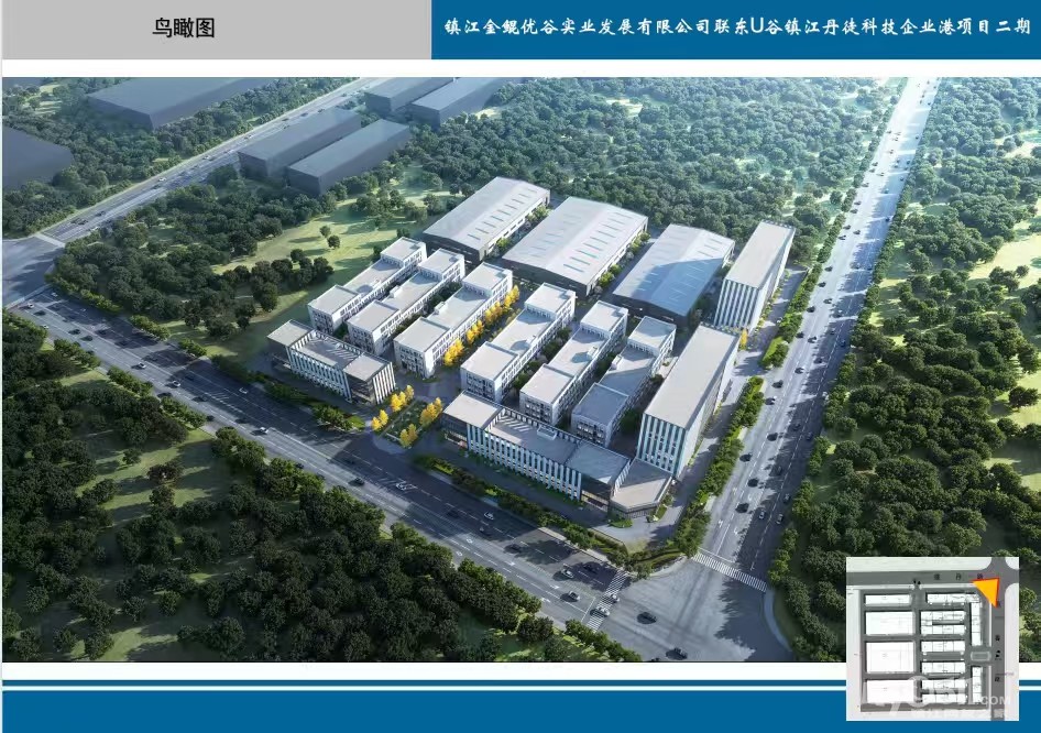项目地处镇江市丹徒区,具体位置在盛丹路与宜春路交叉口的西南侧,位于盐商工业园的东北侧,距离省道金润大道距离1公里,国道G312沪霍线0.8m,,紧邻沪蓉高速镇江支线出入口5km,距离丹徒站4.5km,镇江南站8km,交通便利。项目占地面积85亩,总建筑面积6.3万方。含标准厂房、总部办公为一体的综合性现代产业园区。