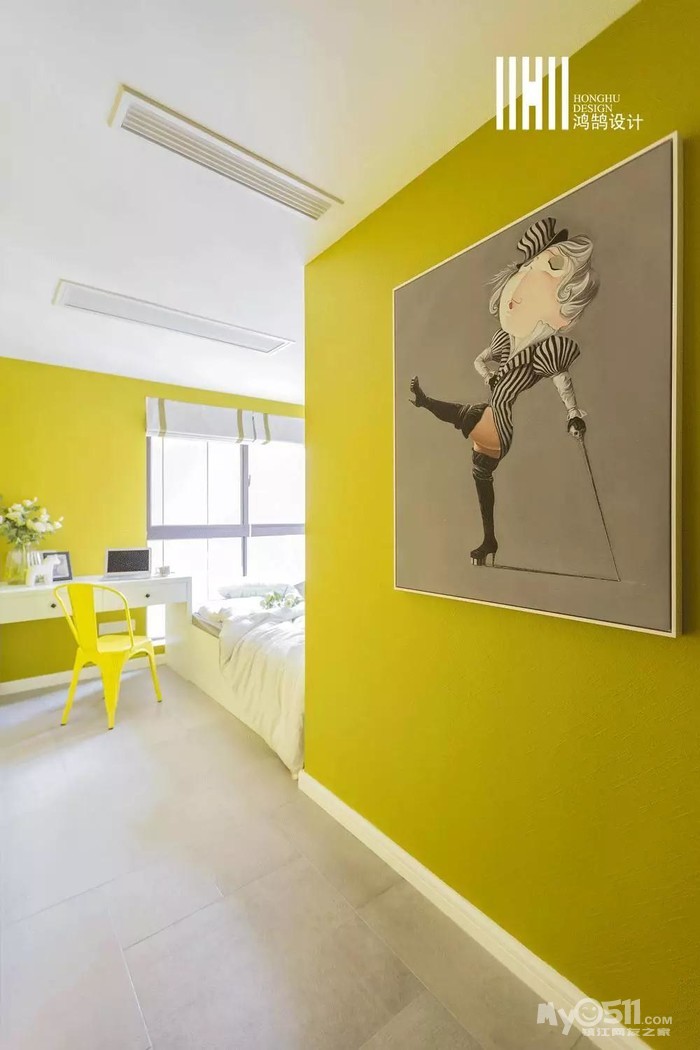 温馨的黄色背景,搭配俏皮的装饰画,道一声:宝贝,晚安!