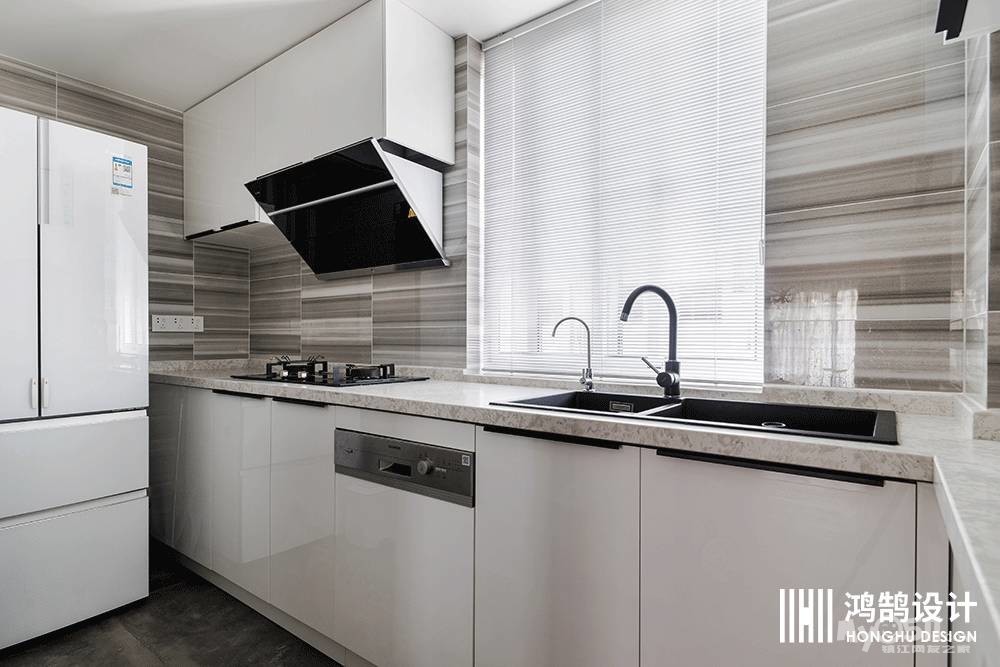 干干净净的厨房在里面做饭的人都感觉很舒服,白色的烤漆橱柜使整个空间更显敞亮、美观。
