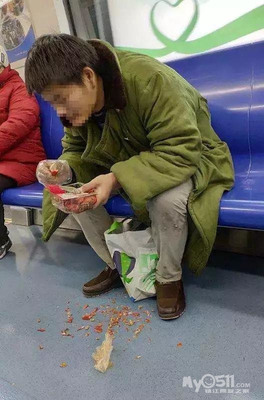 没错,网友说的“地铁吃虾”