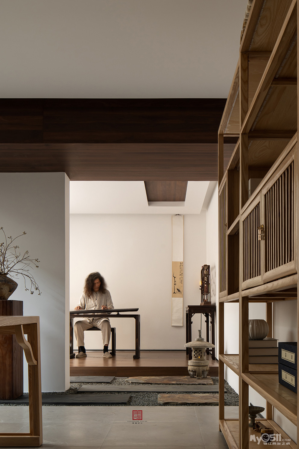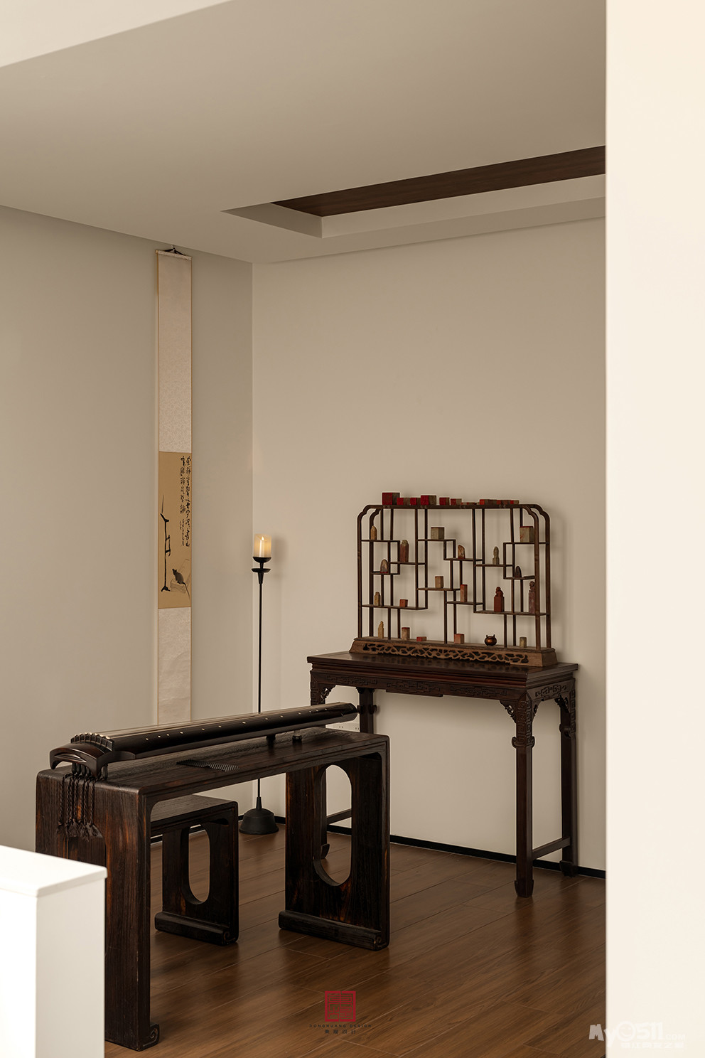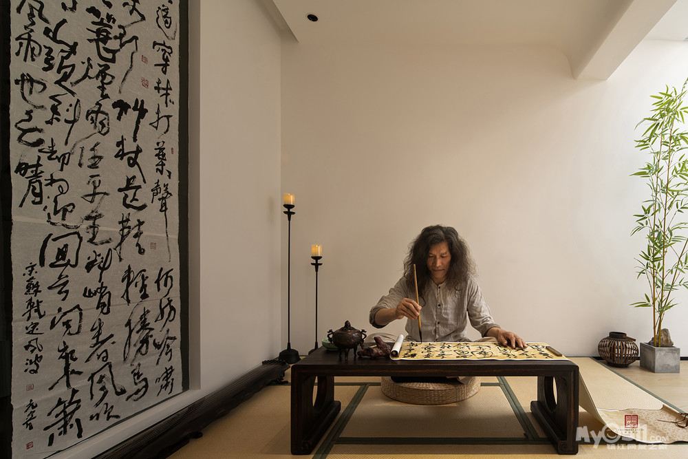 因对不同领域的兴趣,屋主创造了一个个包含着故事的作品,古琴 雕刻 绘画 书法 收藏 ~不同的身份和灵感,让整个家蔓延开来的是满屋的书香和文化的传承