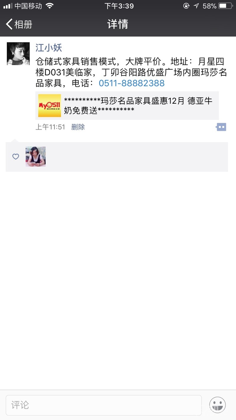成功跟帖前50名,均可免费到玛莎名品家具店凭个人ID及朋友圈分享记录领取德亚牛奶一箱。