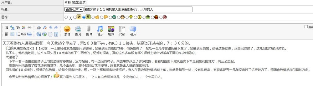回头乘的10点半的,师傅仍然热情,给每个乘客热情讲解,一路上都和乘客热情招呼,有人在路边就热情地喊上车,当然是每到一站,没有乱停车,有乘客说五十几年没来过了这些地方了,师傅也热情地指引路的方向。