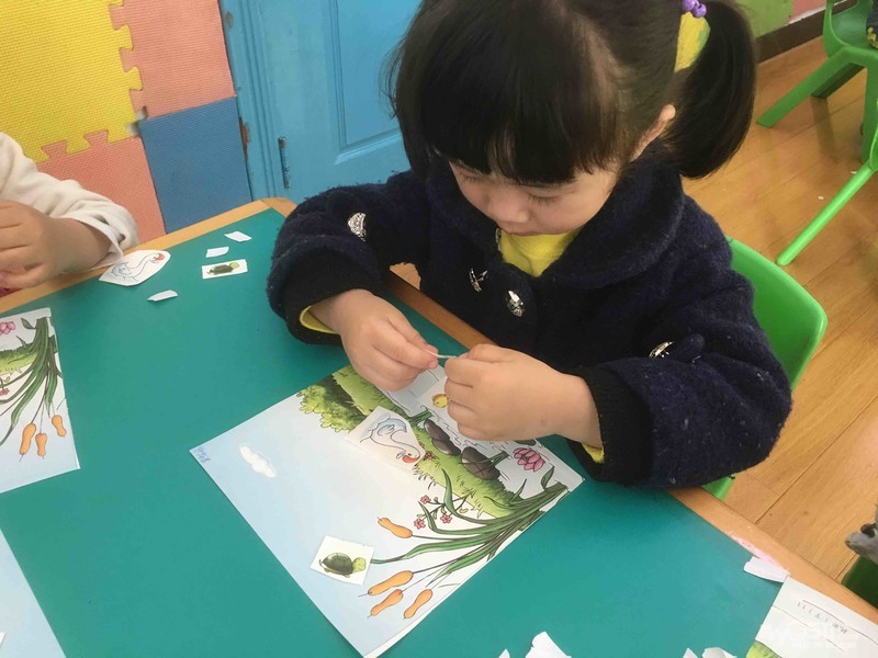 看宝贝们把动物都贴到小池塘里,真棒