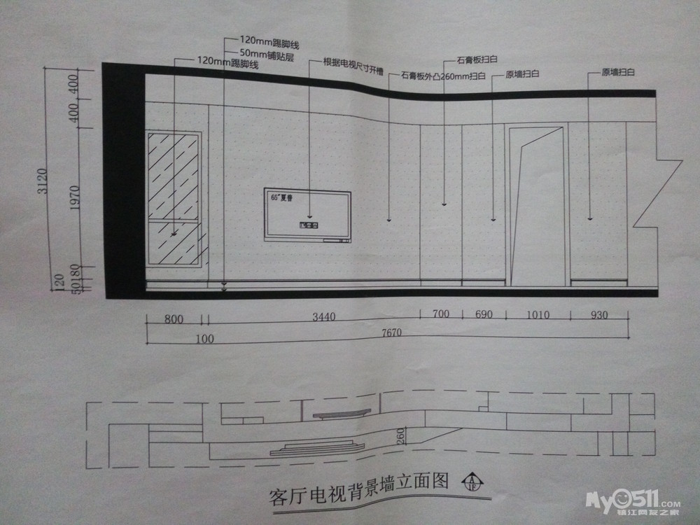 电视机是嵌在石膏板墙里的,所以必须先知道电视机的尺寸,才知道