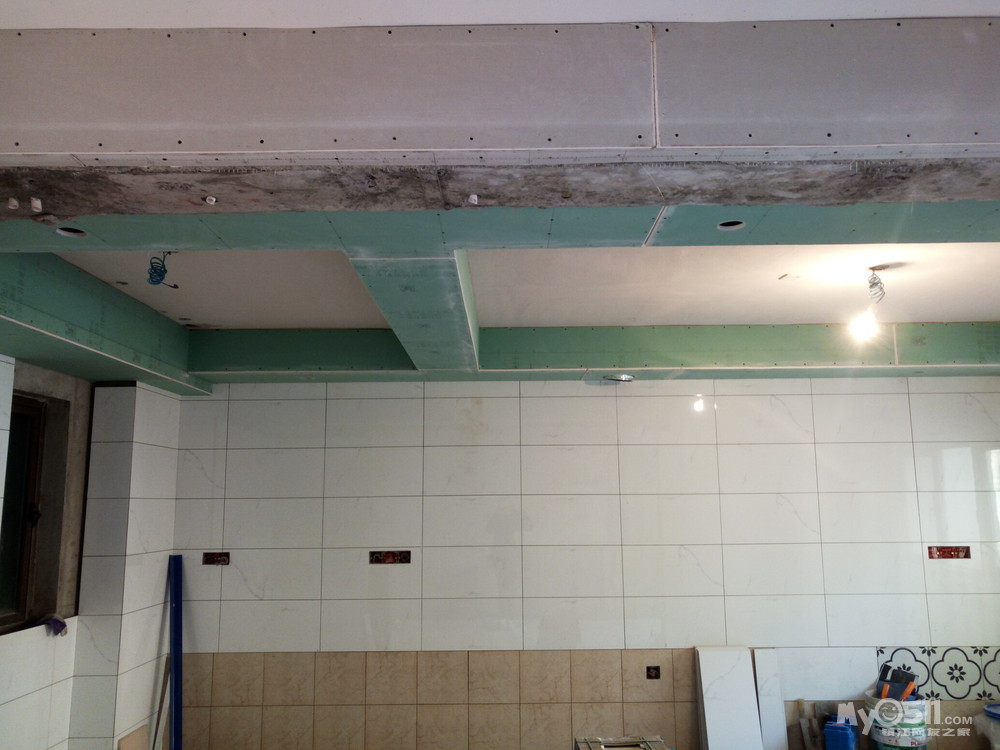 厨房局部用防水石膏板吊顶!