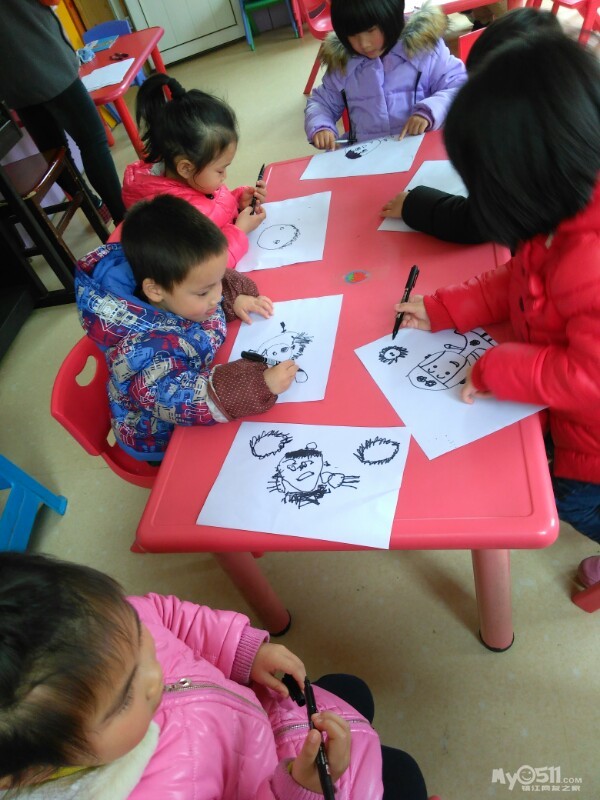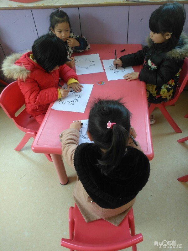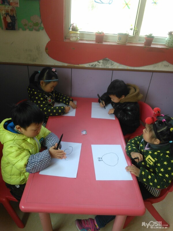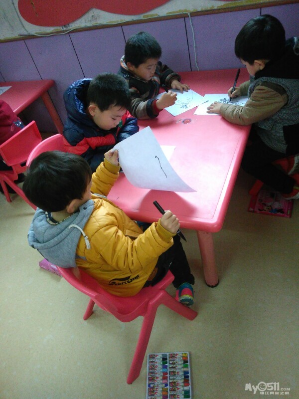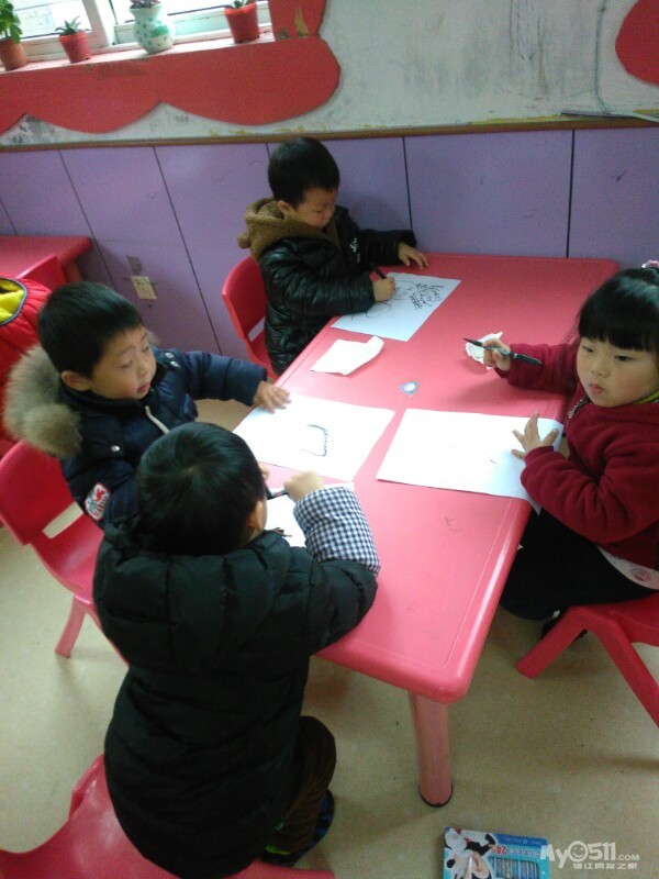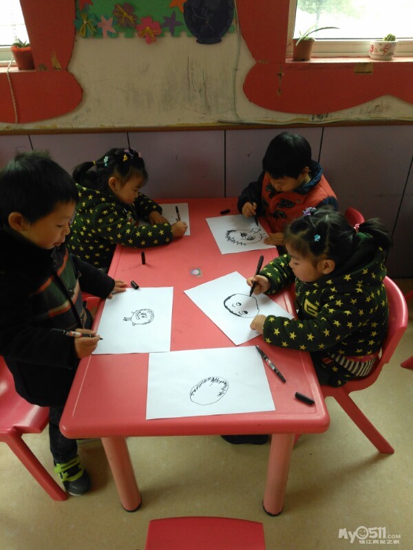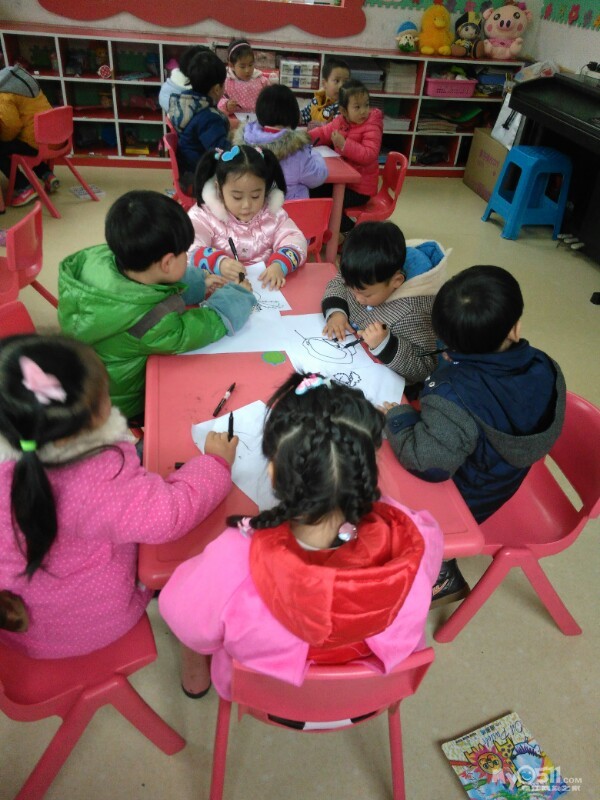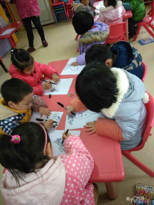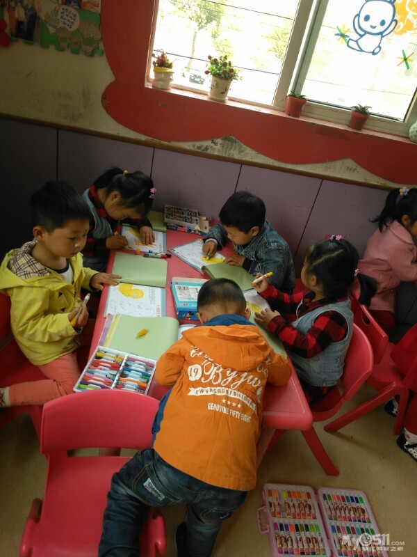 宝贝们很认真的画画。