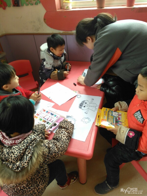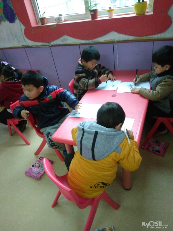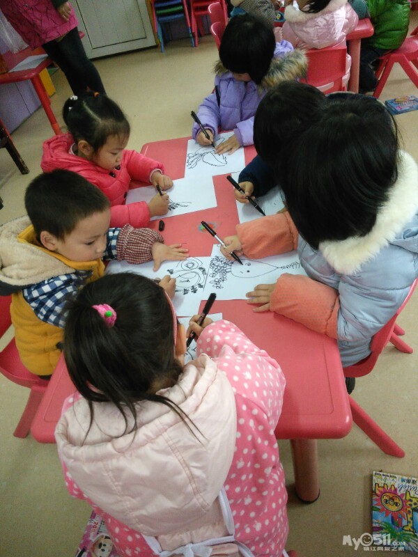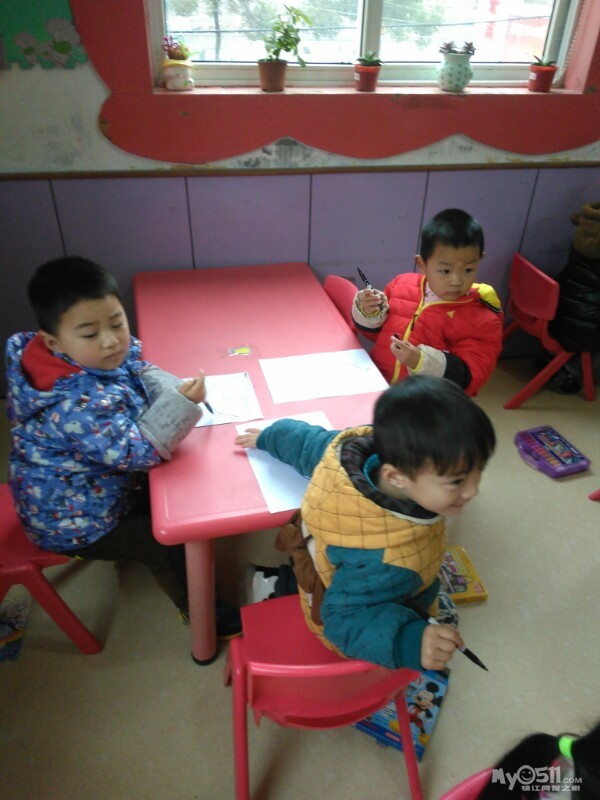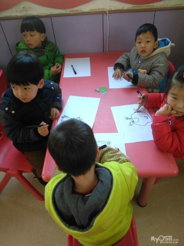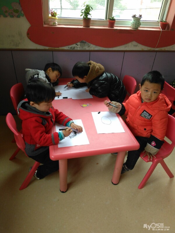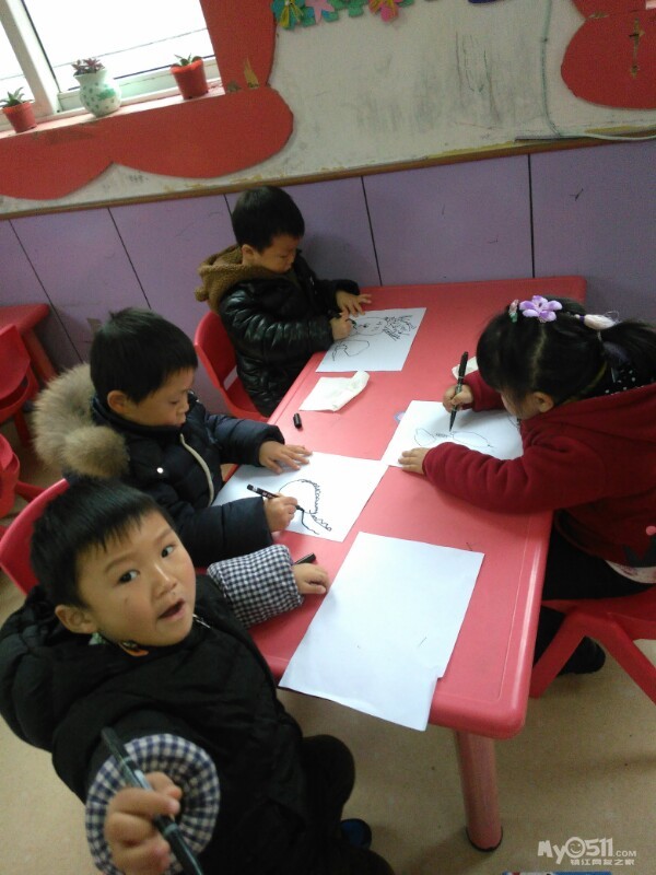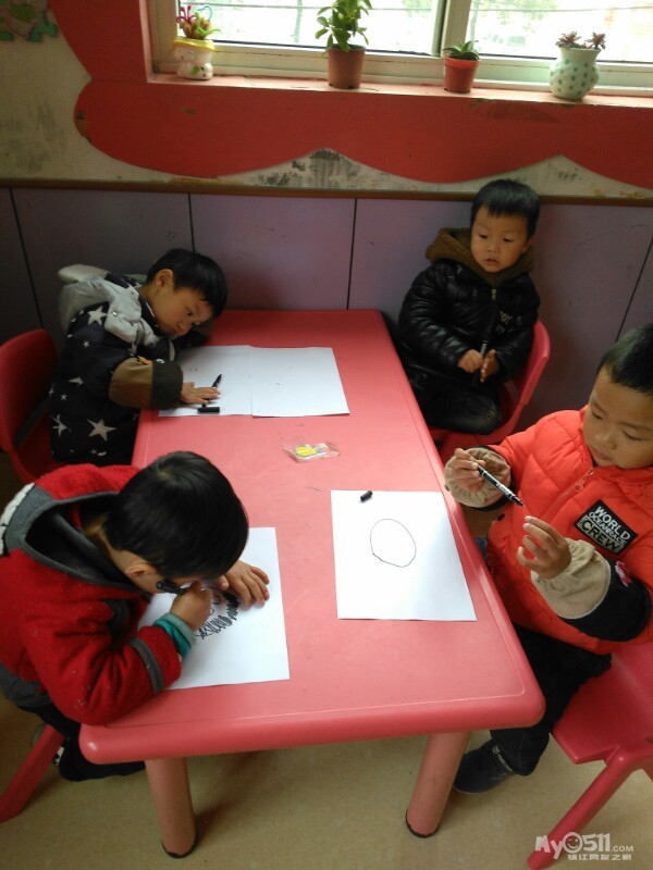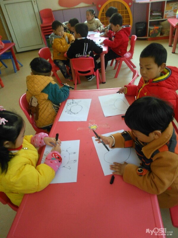 宝贝们很认真的画画。