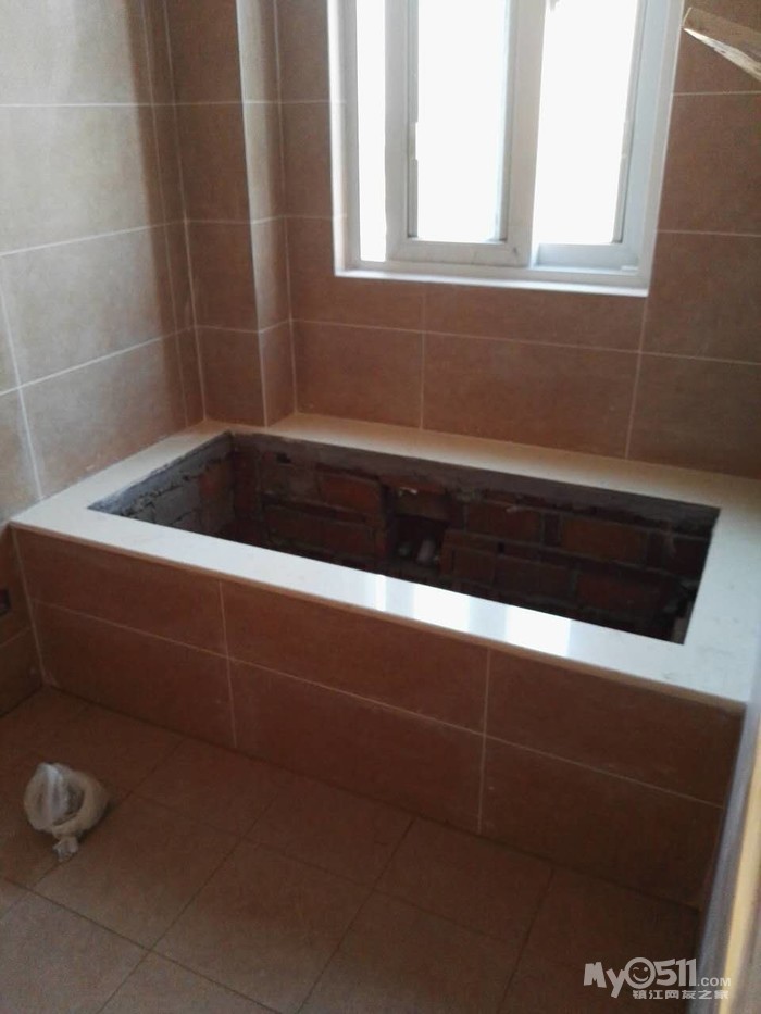 我要疯掉了!“马师傅啊!你说的左右和我的左右不在一个立面上,你还是说方向吧!”我终于知道问题了:预留的下水在北面,浴缸的下水在南面,中间横跨了一个浴缸的长度。而我买的龙头缸,龙头位子已确定,所以浴缸的南北朝向就固定了动不了了,而预留的下水都已砌在浴缸台里了怎么办!