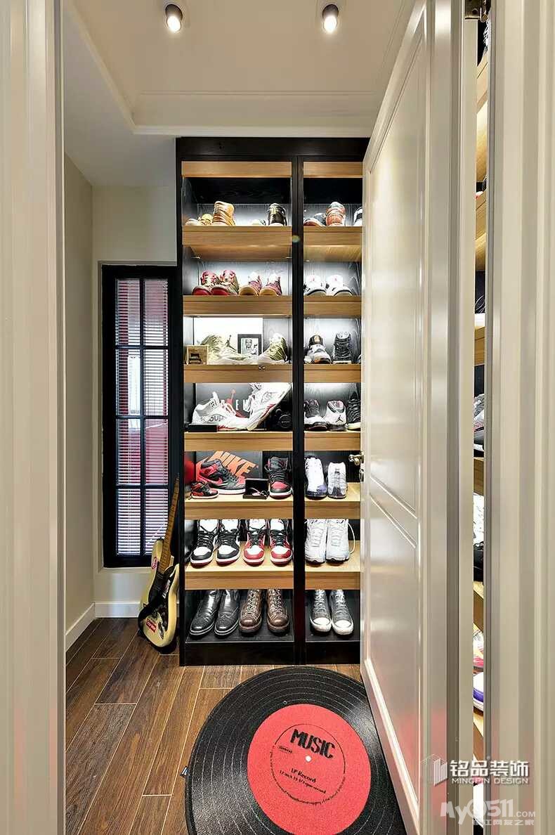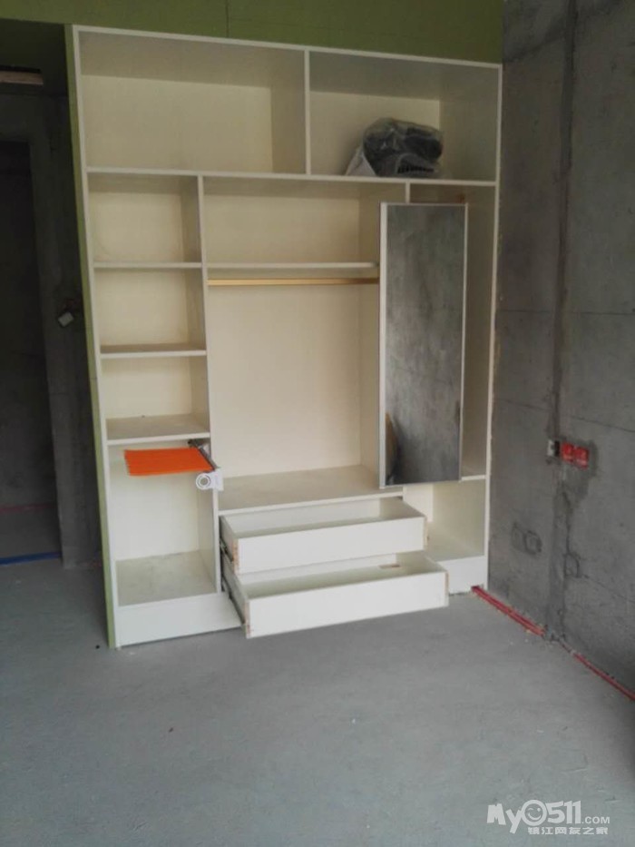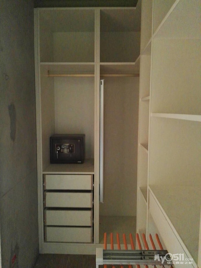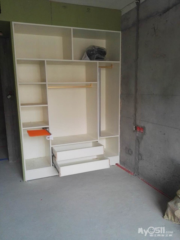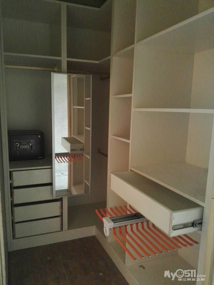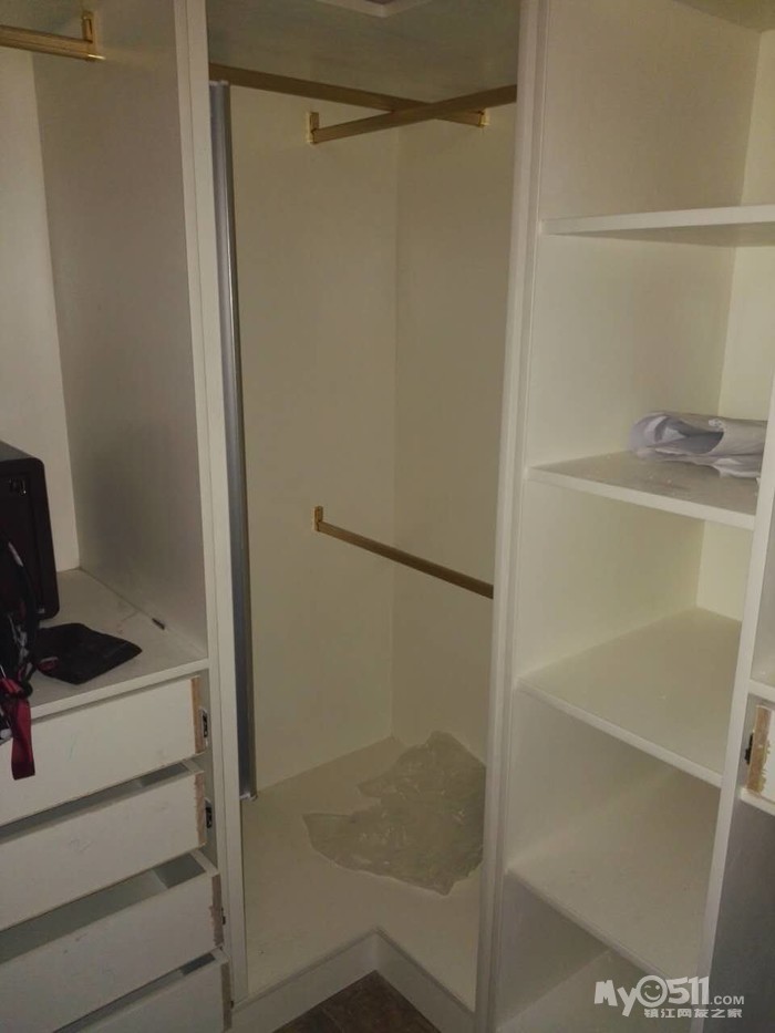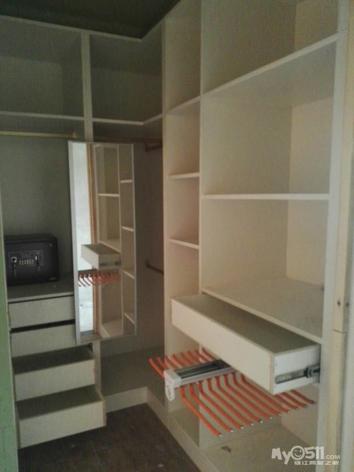 。既想省钱,又想出效果。那沟通是必不可少的了,为了设计出我喜欢的衣帽间,图纸反反复复的给推翻重画了五六次。白天要上班所以只有晚上在微信里跟陈工沟通,好在陈工从来都没有厌烦过,总是很认真的听取我的想法,再把我的想法落实到图纸上。要想木工打制的柜子出效果,作为主家首先要了解自己家的需求,其次要多看,多到定制衣柜店逛逛,看多了才能提高自己的审美,为自家的衣柜提供素材。最后还要多总结,看了那么多的漂亮衣柜就要去消化总结为什么定制衣柜更容易出彩。其实定制衣柜也是木工制作的,出彩在于区域划分明确布局合理,衣柜有上衣区,大衣区,棉被区,裤装区和叠放区等。而每个区域的尺寸都是有说法的,比如叠放区一般高多在35cm,过高叠放的衣物太多就会坍塌,而且还会显得衣柜粗苯。而区域划分明确才能显得衣柜整齐不凌乱。而很多主家并不了解这些,只是按照自己的感觉,这里要放衣服太小不方便,做大点,那里就不要裤架了,买个裤架还要不少钱,就省省吧这样做出的衣柜就会很奇怪。同时也就与美观实用无缘了。而订制成品衣柜出彩的另一个重要因素就是配件,不要小看配件就象女士们的手包,闪闪发亮精致的拉链,包扣和金属链都会给皮包增色不少,所以品牌包配件都是美轮美奂精致细腻的。衣柜也一样,挂杆,裤架,穿衣镜,抽屉轨道这些五经件都不能买太差的它是提靓的武器。最后就是罗马柱和顶线了。只有用上了罗马柱和顶线,衣柜才能真正的成为衣柜,否则它就只是个置物架。罗马柱和顶线是衣柜画龙点睛的神来之笔。