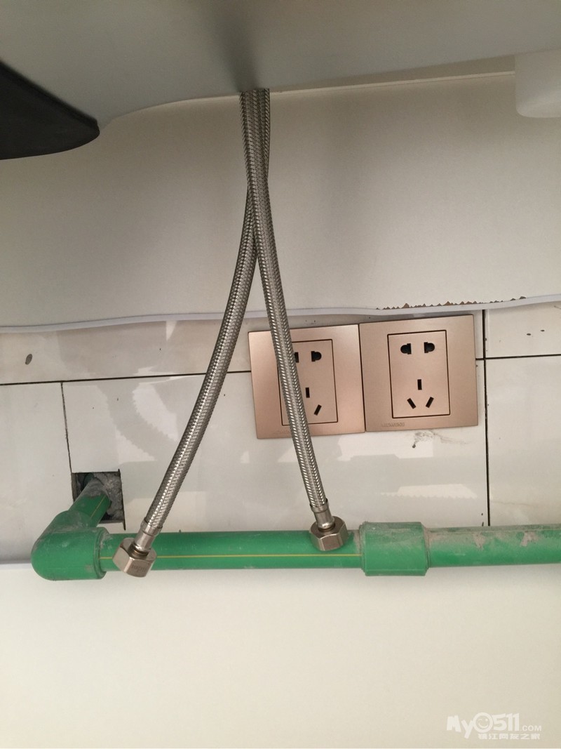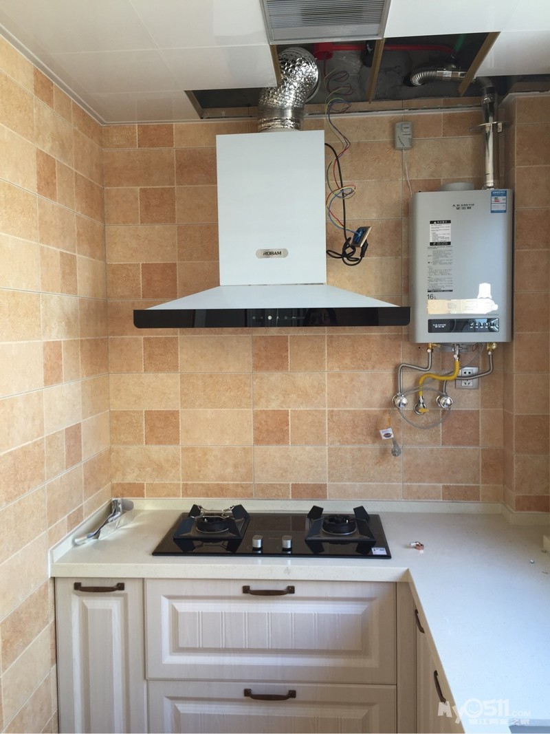 原先对装修的一点点期待现在已经消磨殆尽了,大安装时期果然是最闹心的,原先没有意识到的问题随着一点点的安装突然显现出来了,让人难以接受啊!!如果今天上午安装油烟机,下午安装热水器的话,或许虽然别扭一点,但是问题也算解决了,可这顺序一调的话,油烟机和煤气灶不对称我不能接受啊,说好的热水器紧靠着墙的,水管放的位置往外15公分了,现在变成图上这样了,如果拆掉重新打孔安装,原来的孔就露出来了,难道墙砖重新贴吗?关键今天把水电和做厨柜的人叫过去看了都说自己没问题,说实话,我还真不觉得装热水器的师傅安装有问题!我要把厨柜出的图找出来看下,看看到底是哪边的问题!蓝瘦香菇