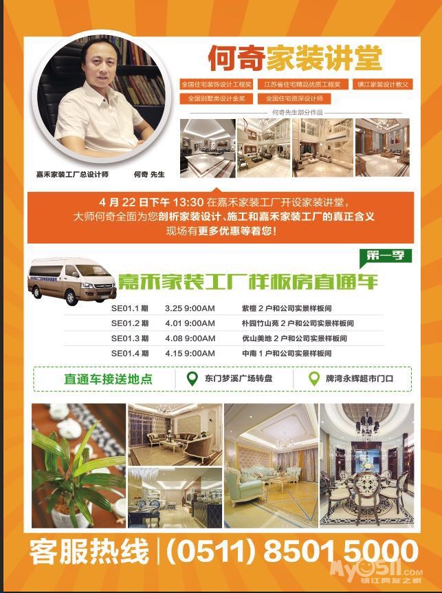 感谢关注嘉禾家装工厂,我们展厅有7套镇江最畅销户型的不同风格的实景样板间,您可以拨打直通车电话,我们免费上门接送您来参观!直通车热线:85015000