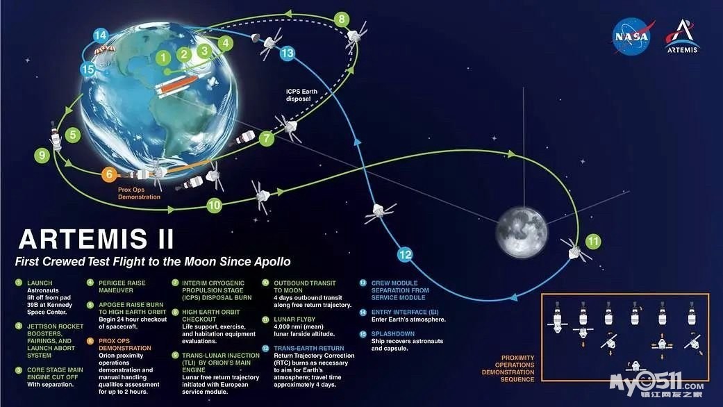 任务时长:约 10 天,将绕地球和月球飞行一圈(不登陆月球),最近时距离月面约 9600 公里,然后返回地球。