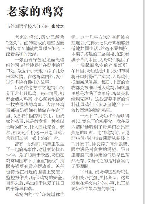 张牧之发表的《老家的鸡窝》