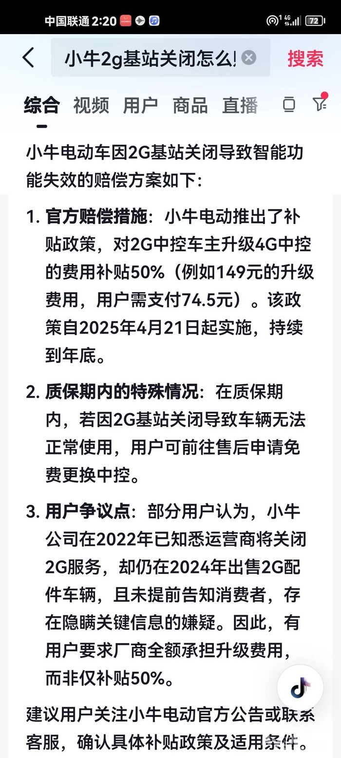 2G升4G换中控要消费者买单?平时一年一收的服务费都是先收后享受定位服务!抖音都说小牛公司奸商!