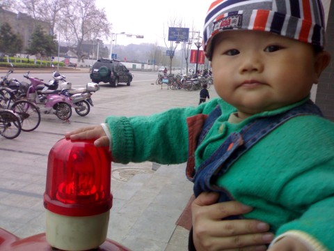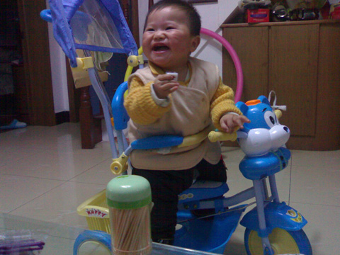 昱成神气呢,和故事会一样不肯坐小车子,都是站在车里玩