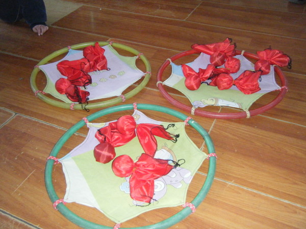 1、以教师个人和幼儿家庭为单位收集自制体育器材所需材料,进行器材制作的练习。