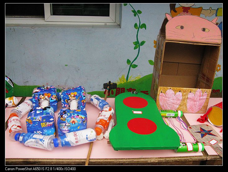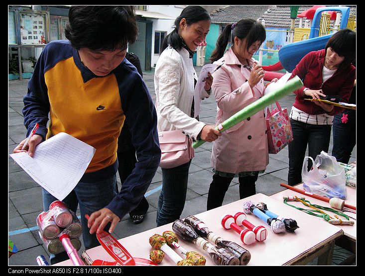 1、此次评比展示活动分两个部分。第一部分是教师发动家长参与制作。第二部分是教师自己制作。教师和家长充分发挥聪明才智,用自己的一双巧手将废旧材料变成了一件件新颖别致,美观耐用的体育器械。此次评比活动以年段为单位,根据幼儿年龄特点,各位教师发挥各自的聪明才智,争取家长配合,利用废旧材料,制作体育器材。