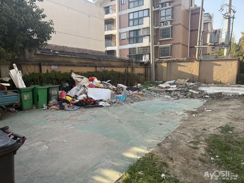 文明城市建设的要紧关头,丹徒区谷阳中大道边上的百悦华府小区南大门羽毛球场地上堆满了大量垃圾,已经一年多了,一个老太把这里当成了垃圾回收场,请问街道和社区还管不管