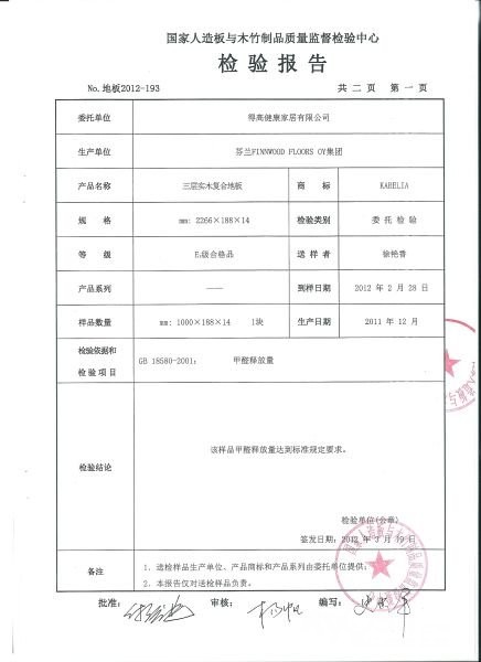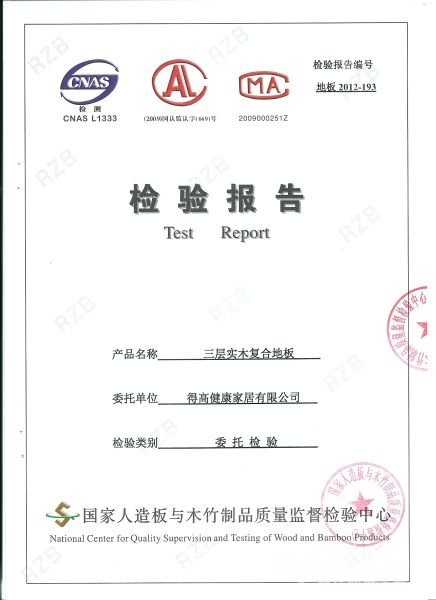 先来个大牌的得高的进口三层实木复合地板:不错,只有0.2mg/L