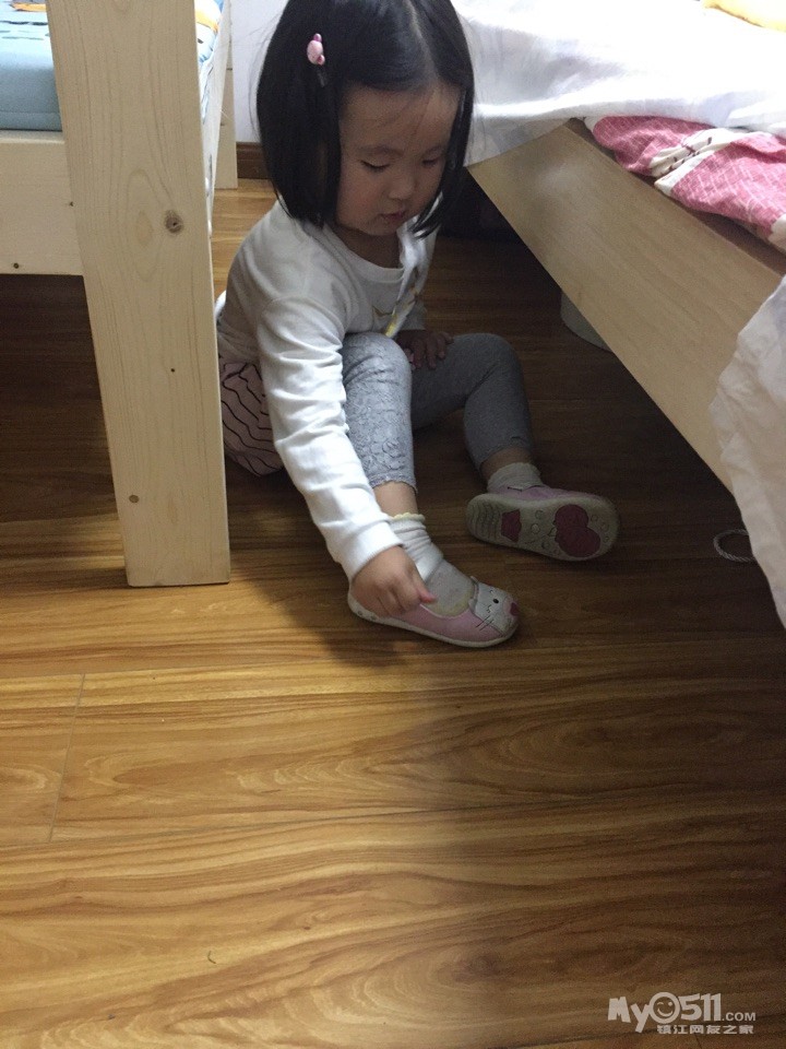 朱珂萱同学自己穿鞋和衣服