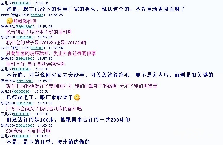 厂里要是继续用好的被罩面料给我们做