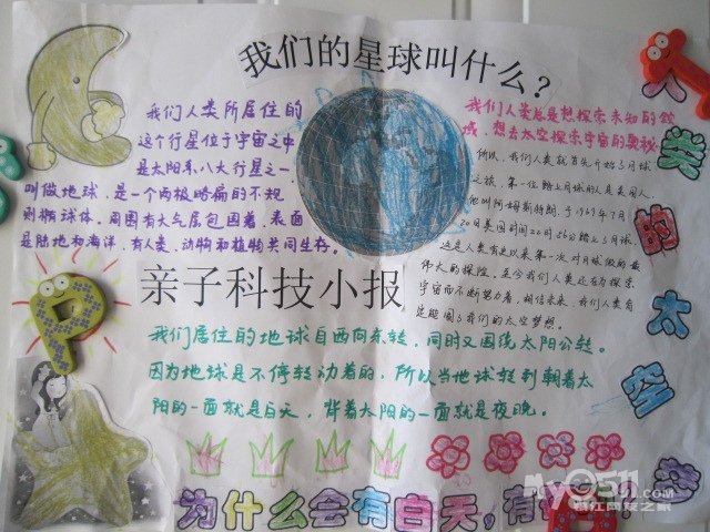 作品要求:由幼儿与家长合作完成科技小报,将收集、剪贴、绘画等手段综合运用,纸张大小为四开,制作正面一版即可,反面无须制作。