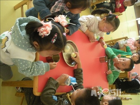 小朋友们在看老师变魔术呢!