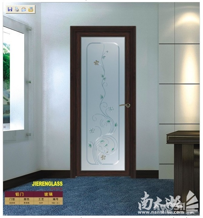 介仁牌铝合金门的线条简洁流畅,造型时尚高雅,醒目大气,颜色丰富,结构连接牢固,耐冲击性强,使用寿命长久;铝门门芯采用著名的中国艺术玻璃十强企业、介仁牌钢化艺术玻璃门芯,产品更显高贵、典雅,更具个性