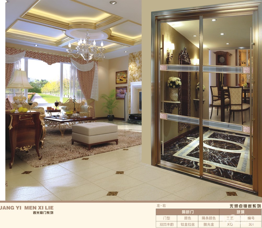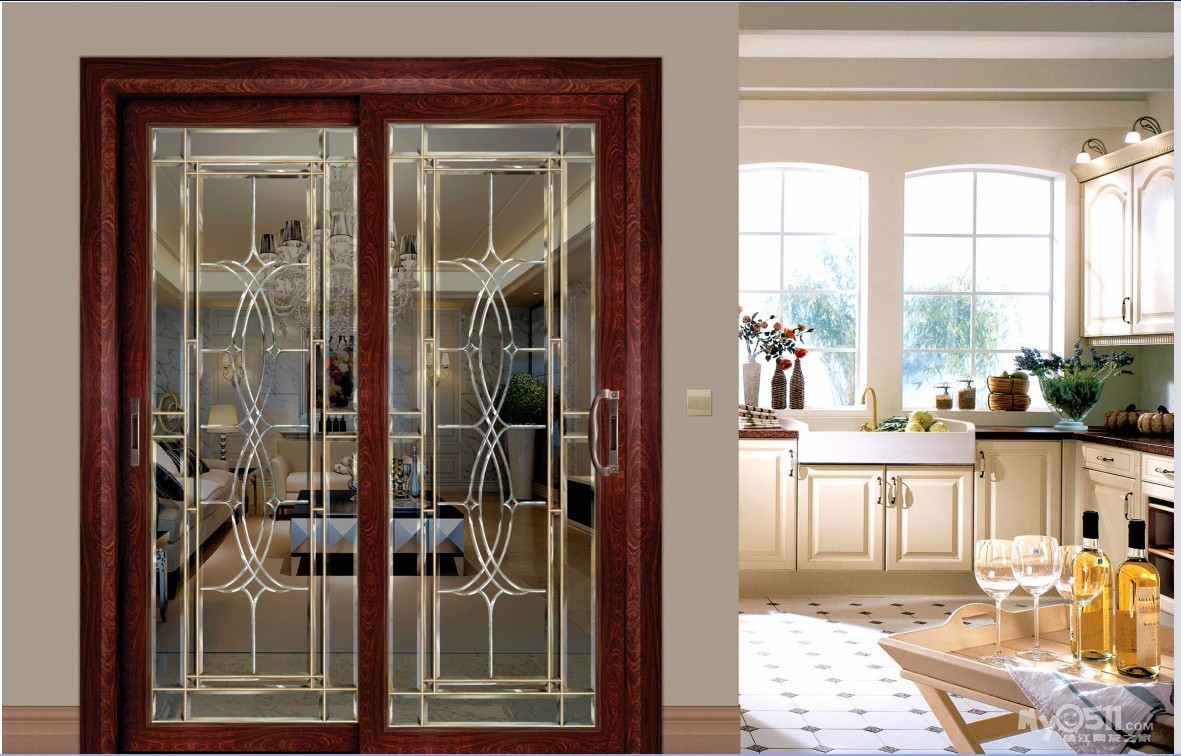 8、平开门欧式线条设计,线条流畅,欧风浓郁。