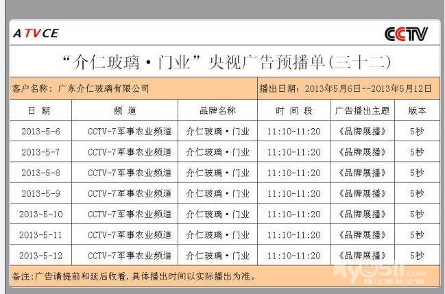 介仁玻璃门业央视广告天天见