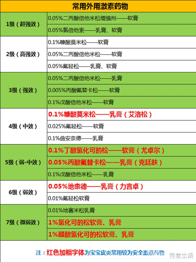 关于激素,根据药效强度外用激素可以分为7级。湿疹外用激素的选择,需要根据病情程度、病灶部位、使用目的等情况做选择。而儿童湿疹通常只需要使用弱效到中效激素,对中重度病情的急性期,可以选择中效激素,对轻度湿疹,或维持用药,或眼周等特殊部位的湿疹,则可选用弱效或最弱效激素。