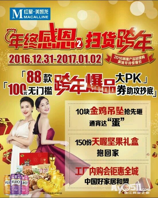 » [抢楼赢RIO,畅饮过新年]红星美凯龙元旦回馈季,裸价狂甩,扫货过年!