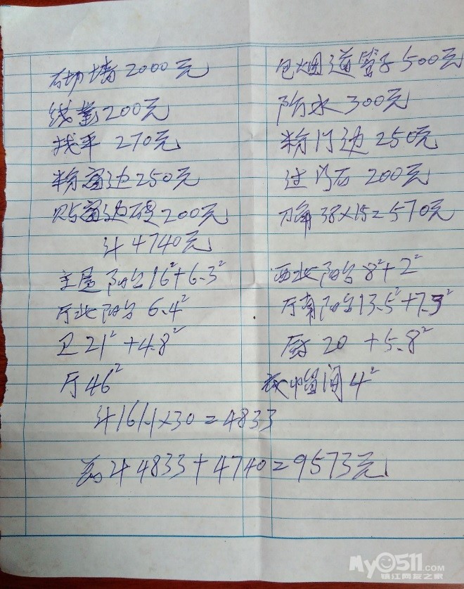 瓷砖开贴之后,继续补材料,黄沙水泥:黄沙4吨*140,水泥2.5吨*360,标准砖600块*0.6共计1750元;