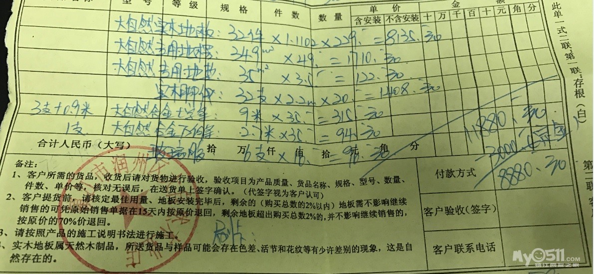 还要注意:(1)尽量一次买齐,这家的补货过程真是让人一把鼻涕一把泪啊;(2)不要一次交清,留点尾款,省的送货的时候出点幺蛾子,扯皮的话你站劣势,我就是货没送齐,但是钱先交清了,后来我还自己去拉的砖,自己上楼。
