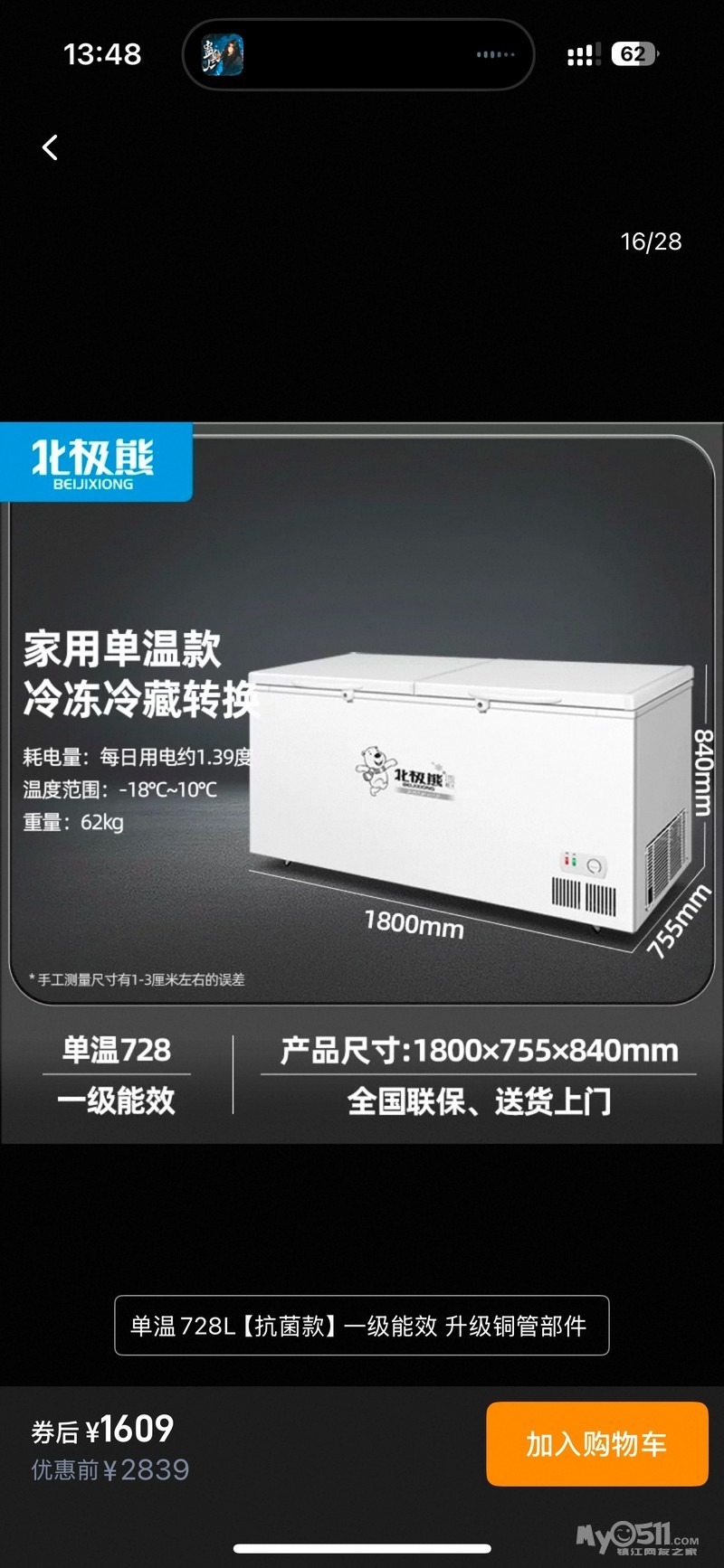 闲置大冰柜,买了一年,价格看着给,丹徒新区上门自提冰柜是718升的,比较大,微信13862452910