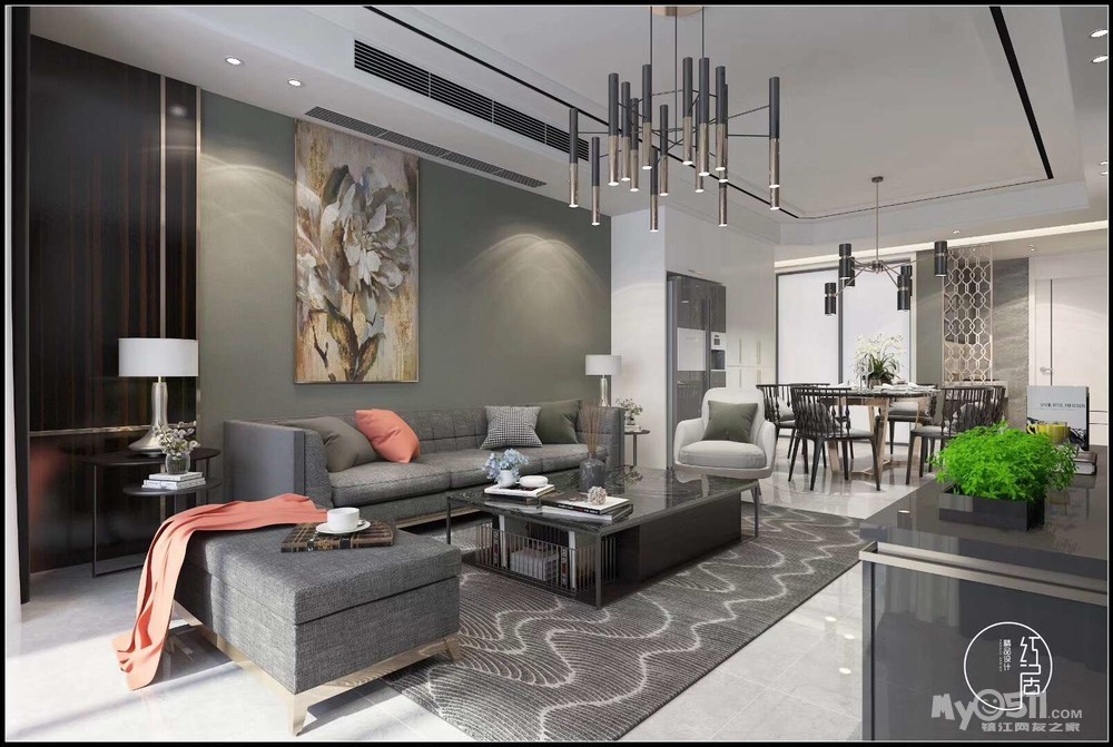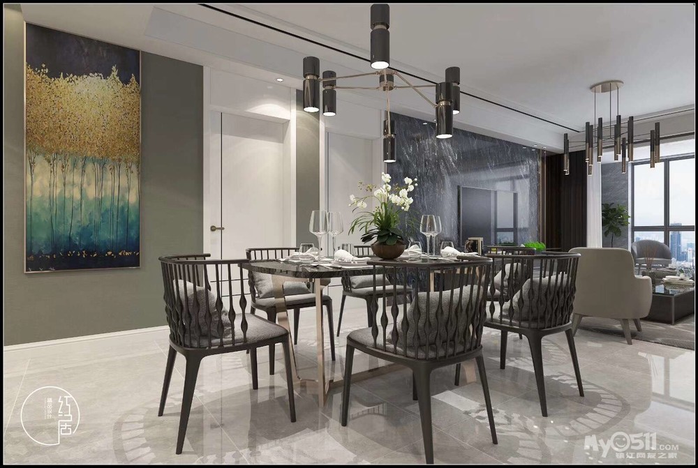 【设计理念】:以深色调为主旨加以跳跃色系的点缀,营造大气而不深沉的空间效果