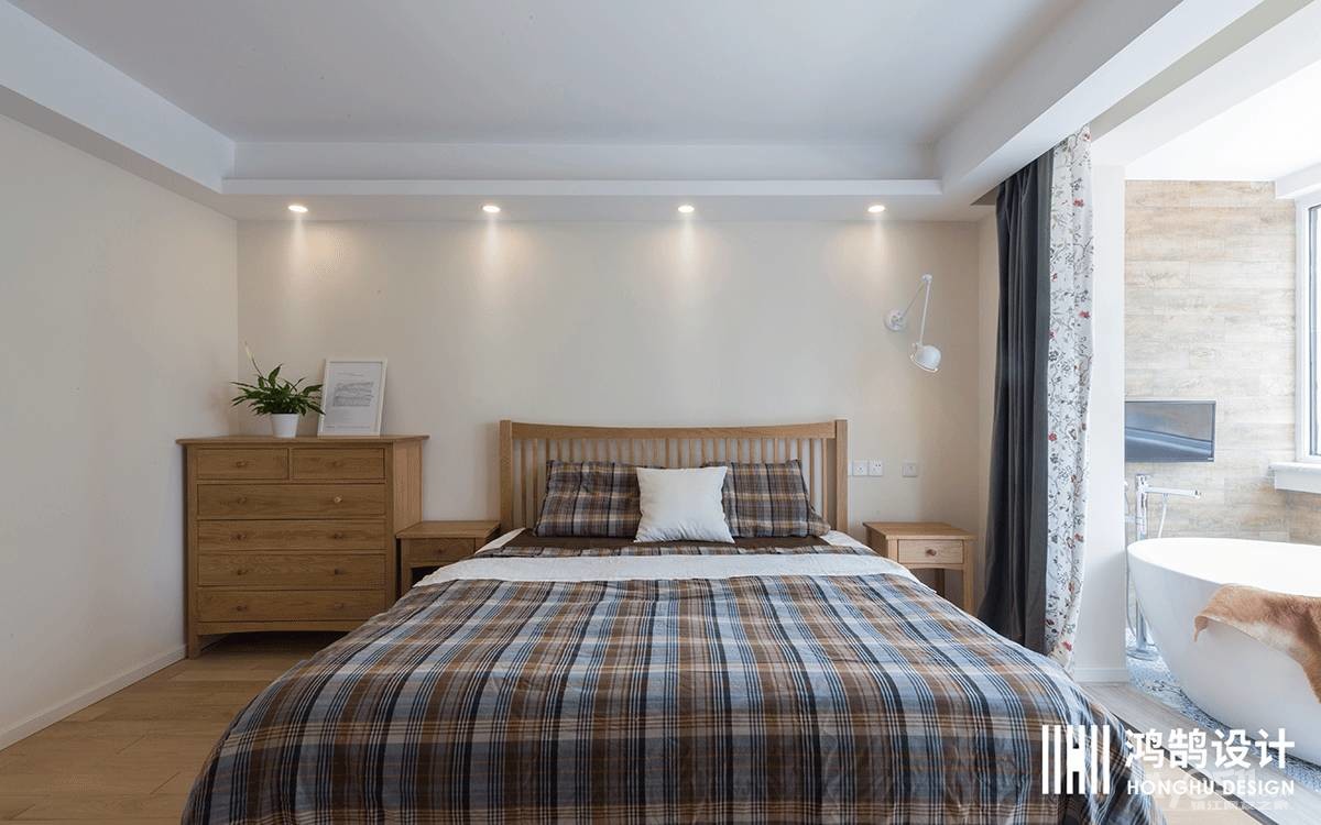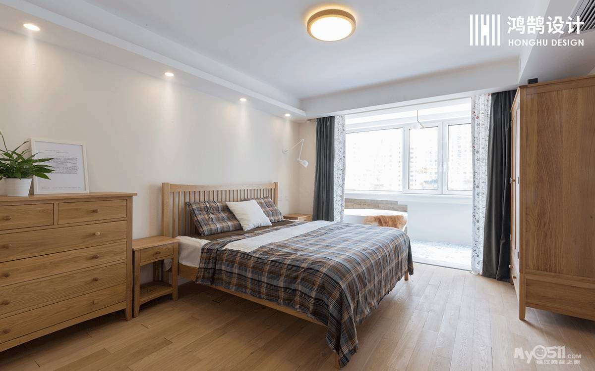 卧室采用了原木色的家具搭配原木的地板,使空间中充满了自然中树木的沁香。
