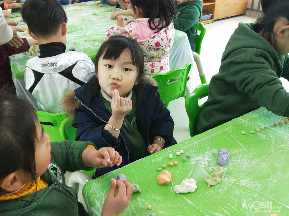 孩子们自己画灯谜、搓元宵,给小班的弟弟妹妹送灯谜,并且下午的餐点就是吃的自己做的小元宵哦!