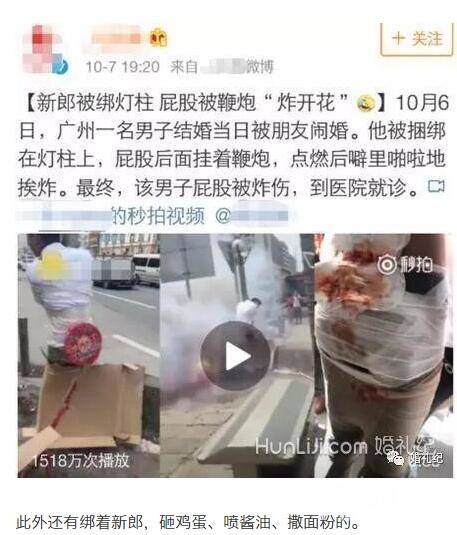 不只是伴娘,去年十一一位伴郎被婚闹炸伤上了热搜。