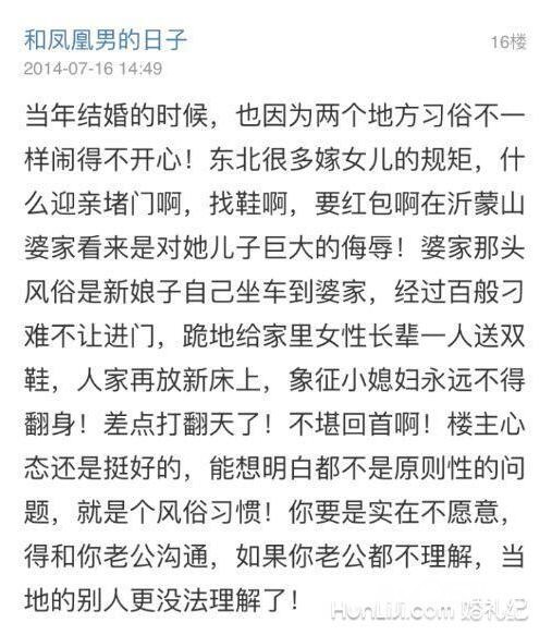 网友还发现2014年就有一位新人在天涯社区发帖称因为盐城当地“扒灰”结婚陋习,和男方家人吵得不可开交。