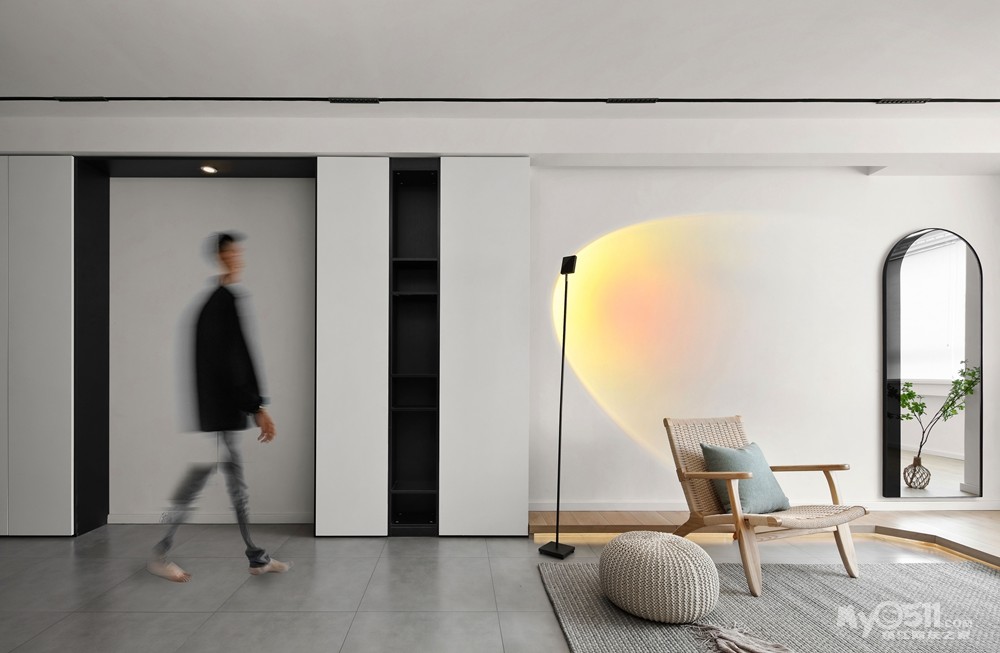 整体采用的是无主灯的设计,由于业主预算有限,顶面做了磁吸灯。