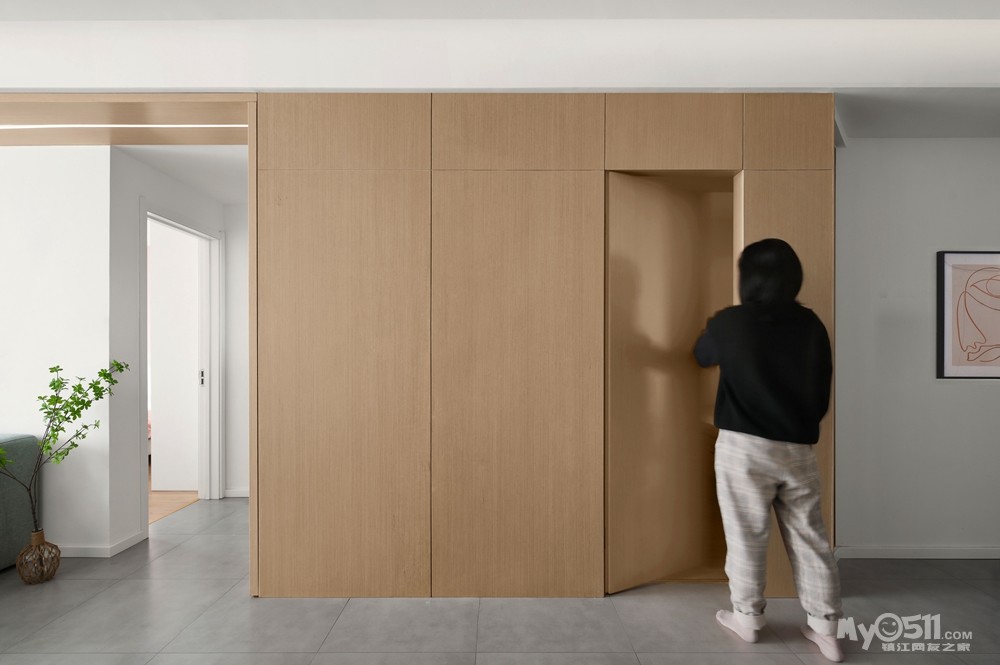 2、客餐厅做了大量的储物柜,和门厅的鞋柜连接,做了钢琴也内嵌其中