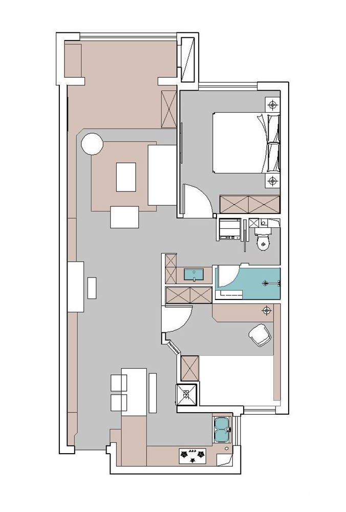 3、客厅弱化,放置了1.8米的双人沙发