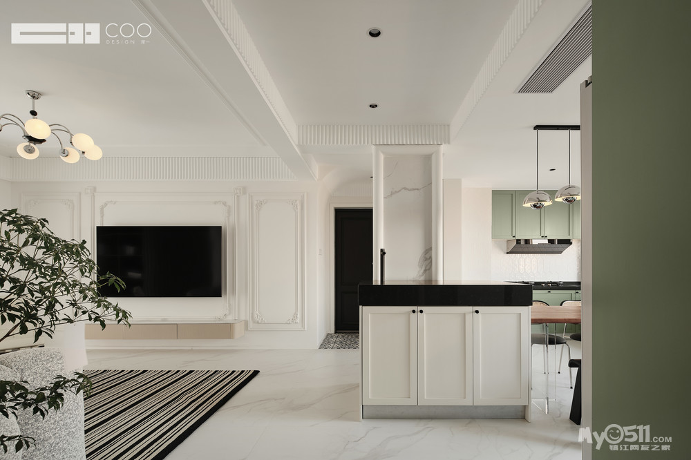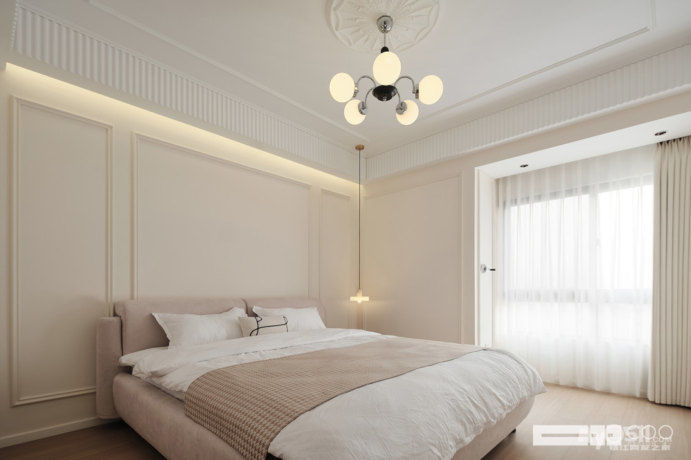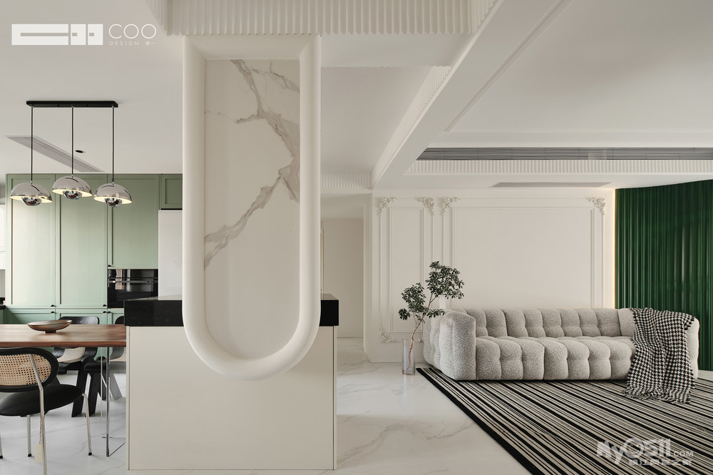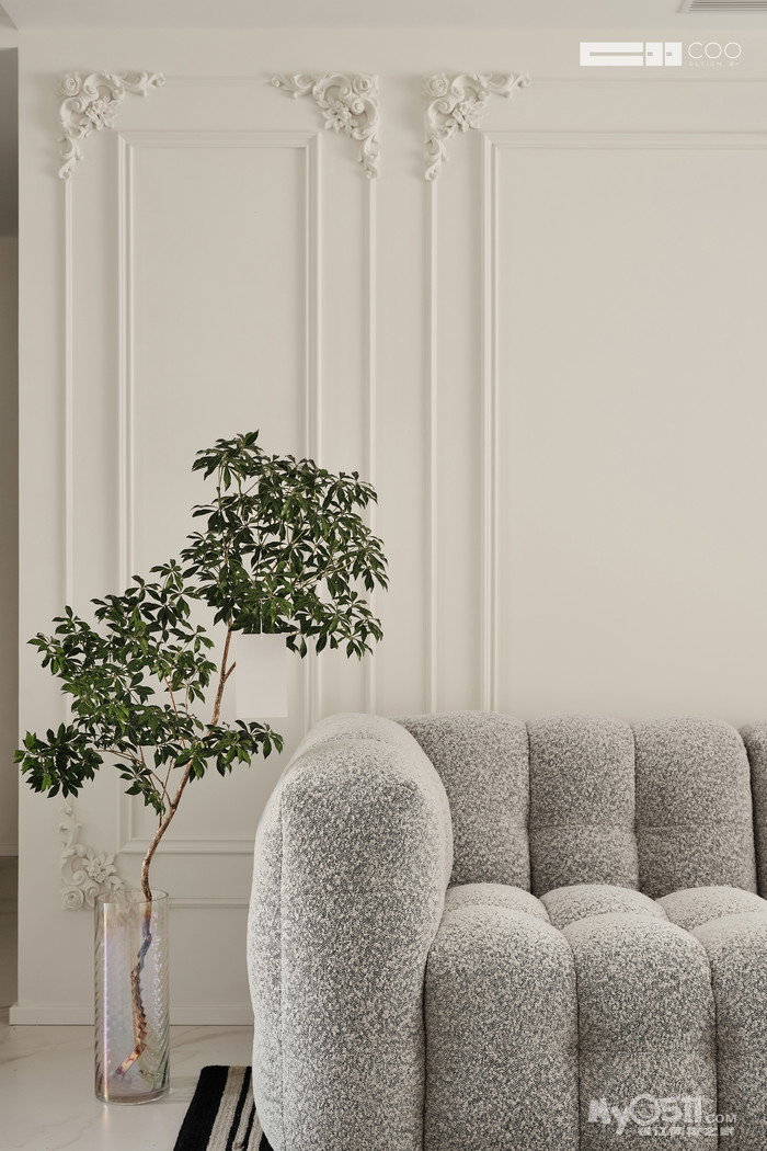 本案的委托人比较钟情于法式风格,但是又不想像古早的法式拥有过于复杂的造型,所以我们将现代风格与法式风格相融合,加之业主喜爱的颜色的点缀。