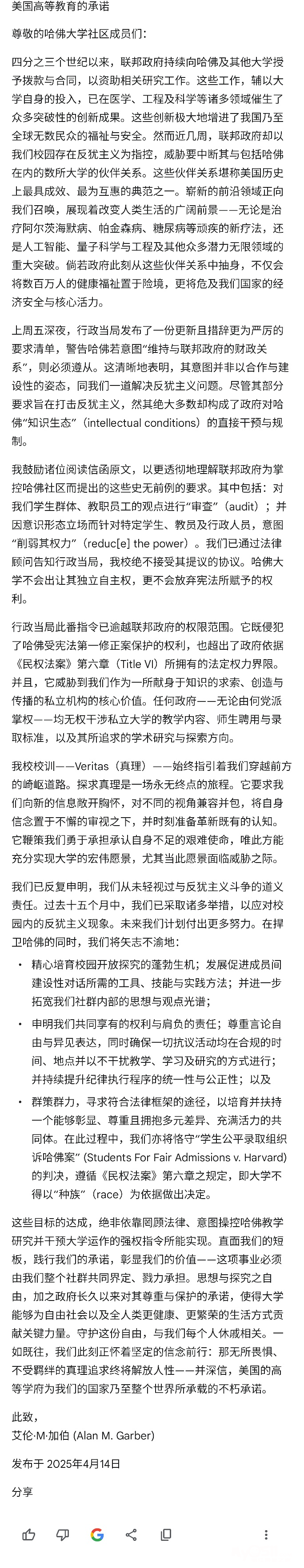 公开信无法翻译,大家可以自己去搜索。可能这才是教育的本质!